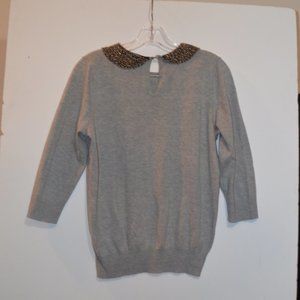LC Lauren Conrad Metallic Beaded Round Collar Grey Sweater Girls M