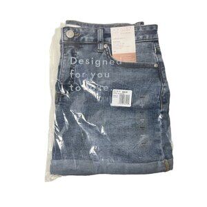 LC Lauren Conrad Mid Rise Medium Wash Distressed Cuffed Jean Shorts Sz 14 New