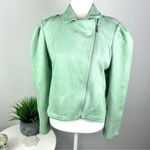 Lauren Conrad Moto Jacket womens size medium green zip up puff sleeve