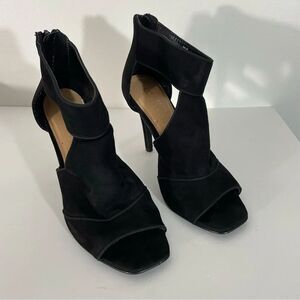 LC Lauren Conrad Muffin Black Faux Suede Ankle Band High Heels Size 8