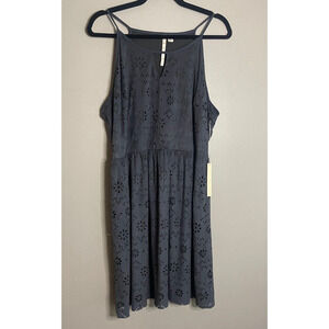 LC Lauren Conrad NWT Navy Lasercut Floral with Key Neck Faux Suede Dress Size XL