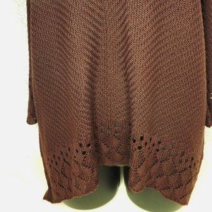 Measurements: When laid flat chest from armpit to armpit approximately 18 inches, length from shoulder to hemline at the center of the waist approximately 25 inches (sweater designed to hang lower on each side), sleeve from armpit to wrist approximately 11.5 inches (not full-length sleeves)
