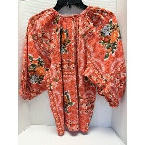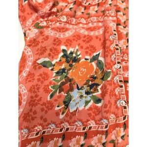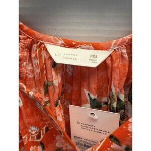 LC Lauren Conrad Orange Red Floral 3/4 Raglan Sleeve Button Front Top Sz PXS New