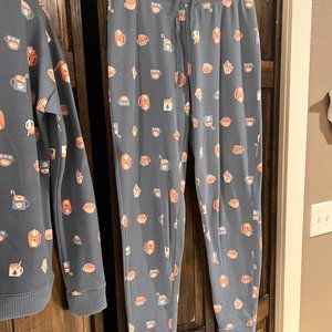 Small/Long SUPER soft pj set. Coffee/Tea mugs are the print. I'm 5'10" and pants/sleeves were long.
