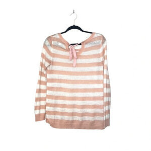 LC Lauren Conrad Peach & White Striped Open Back Knit Sweater Medium Women’s