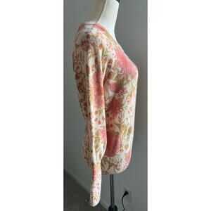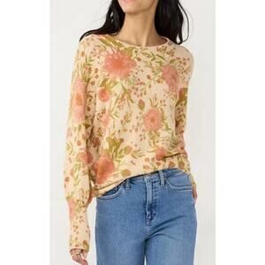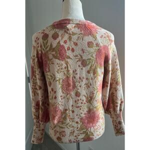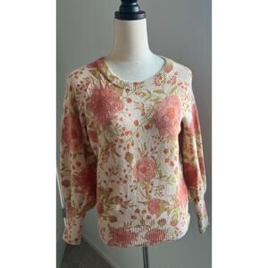 LC Lauren Conrad Pink Floral Print Crewneck Sweater Cream Pressed Peony Sz S