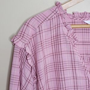 LC Lauren Conrad | Pink Plaid Ruffle Detail Button Down Shirt