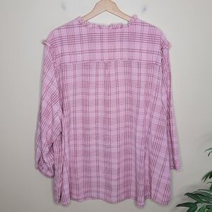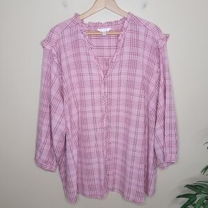 LC Lauren Conrad | Pink Plaid Ruffle Detail Button Down Shirt Size 4X