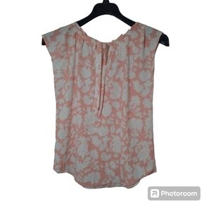Lauren Conrad Pleated Cap Sleeve Light Weight Pink & White Floral Blouse Size Small