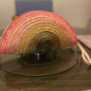 Chic clutch with pink exterior. Gold zipper detail. Perfect for any occasion.