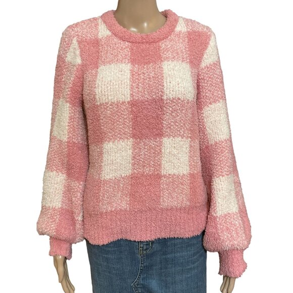 LC Lauren Conrad Plaid Pink White Fuzzy Sweatshirt Size Medium
