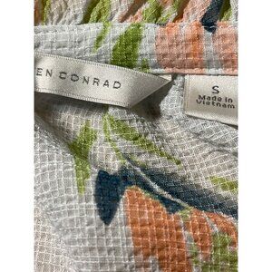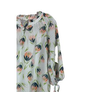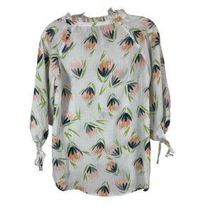LC Lauren Conrad Popover Blouse Womens S Sheer Floral Print 3/4 Sleeve FAIR READ