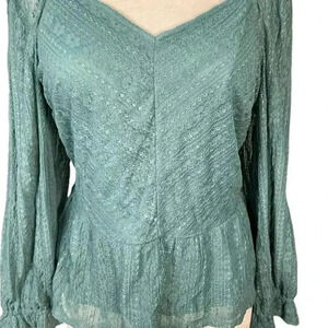 LC Lauren Conrad Puff Sleeve Lace Peplum Blouse NWOT Size XXL Huxley Blue