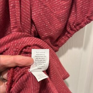 This chic red blouse by LC Lauren Conrad features charming puff sleeves and a flattering peplum silhouette. The smocked and ruffled details add a touch of elegance, making it a versatile piece for any occasion.