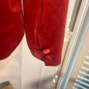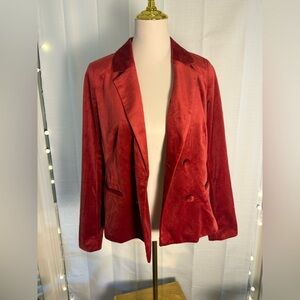 Chic red velvet blazer with double-breasted design. Ideal for elevating any look.