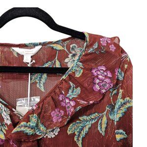 LC Lauren Conrad Ruffled Sheer Metallic Brown Lined Cami Top Blouse Set New