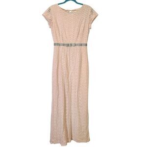 LC Lauren Conrad Runway Collection Enchanted Woodlands Runway | Open Back, Eyelet Lace Column Maxi Dress With Bow detail | 10 | MSRP $74 | Lined | Measurements Laying Flat and Unstretched: Pit to pit 17.5" | Waist 14" | Length 55" | Sleeve Length 4" | Slit 23" | Please refer to the photos for the condition.