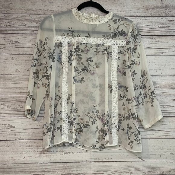🍗 LC Lauren Conrad Runway High Neck Sheer Top Size Small