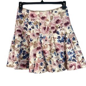 LC Lauren Conrad Runway SZ 10 Mini Skirt Floral Stretch Pleated Scuba Flared New