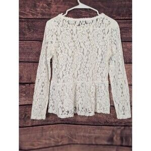 LC Lauren Conrad Sheer Runway Collection Peplum White Lace Top Small Bridal