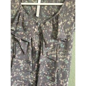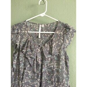 LC Lauren Conrad Sheer Women's Blouse Size S Gray Floral Sleeveless Ruffle