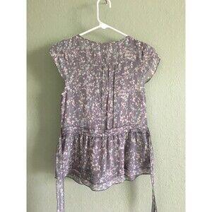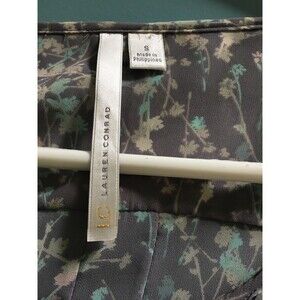 BEAUTIFUL BY LAUREN CONRAD SIZE SMALL SHEER BLOUSE BLOUSE.SPLIT CAP SLEEVE,SCOOP NECKLINE,FRONT BUTTON UP WITH RUFFLE DETAIL,TIE AROUND WAIST.100% POLYESTER IN GRAY COLOR WITH BEAUTIFUL DELICATE FLORAL PRINT MACHINE WASH COLD.BLOUSE IS NEW WITHOUT TAGS,COMES FROM NON SMOKING HOME.MEASUREMENTS LYING FLAT:ARMPIT TO ARMPIT: 17"WAIST: 15 1/2"LENGTH CENTER BACK TO END: 22 1/2"PLEASE CHECK MEASUREMENTS AND FEEL FREE TO ASK QUESTIONS.