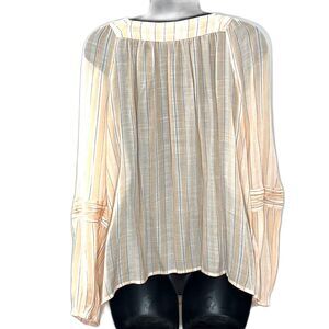 LC Lauren Conrad Shirred Peasant Top Peach White Size XL