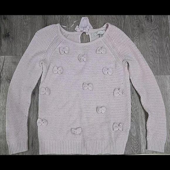 LC Lauren Conrad Size M Tie Neck Cream Knit Bow Design Sweater Women
