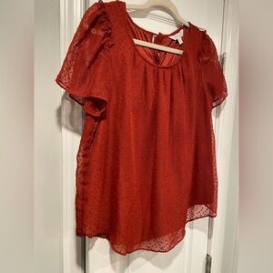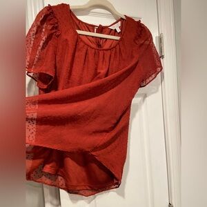 LC Lauren Conrad Size S Brick Red Lined Short Sleeve Textured Tie Back Blouse