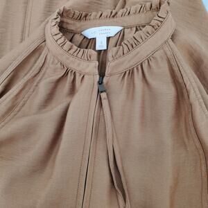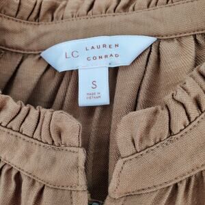 LC Lauren Conrad Small Tan Zippered Halter Ruffle Neck Crop Jumpsuit Pre Owned