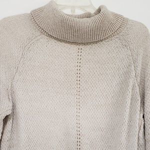 LC Lauren Conrad Soft Long Sleeve Cowl Neck Beige Sweater with Tie Hem, Medium