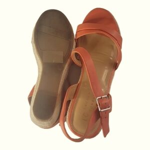 LC Lauren Conrad Strappy Wedge Heels Espadrilles Spearmint Coral Sandals Sz 10