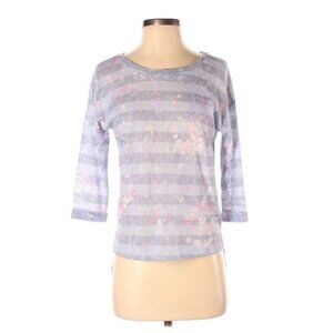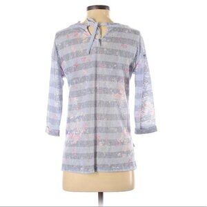 LC Lauren Conrad Striped Floral Sweater Size XS Blue Lightweight 3/4 Sleeves