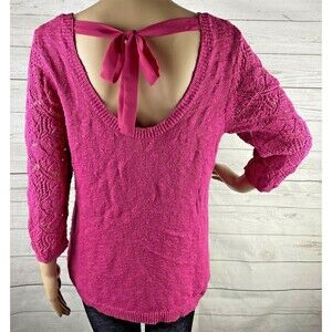 LC Lauren Conrad Sweater Medium Bright Pink Crochet Lace Front Tie Back Knit Top