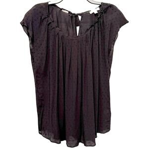 LC Lauren Conrad Swiss Dot Cap Sleeve Sheer Top Black XL