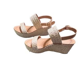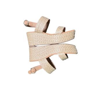 LC Lauren Conrad Tan Straw Ankle Strap Memory Foam Wedge Size 8.5
