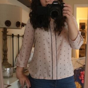 LC Lauren Conrad Tiny Apple Printed Blush Blouse Women's Small S Faux Button Top