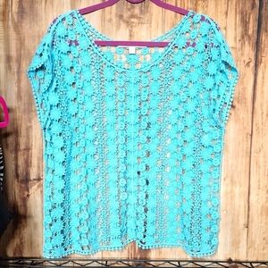 LC Lauren Conrad Turquoise Crochet Top