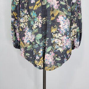 LC Lauren Conrad Watercolor Floral Feminine Peasant Pullover Top Blouse Size S