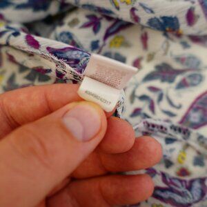 LC Lauren Conrad White Purple Blue Floral Sheer Scoop Neck Blouse Capped Large L