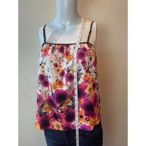 LC Lauren Conrad Women Camisole Tank Top Floral Back Zip Adjustable Strap Pink S