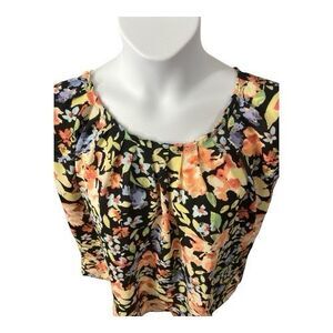 LC Lauren Conrad Women Pleat Neck Blouse Plus Size XXL Black Multicolor Floral