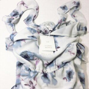 LC Lauren Conrad Womens Gray Blue V-Neck Floral Ruffle Maxi Dress Sz 4 NWT~ Last One