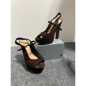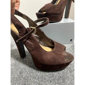LC Lauren Conrad Womens Heels Platform SZ 6M Brown Strap Peep toe