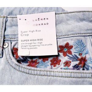 LC Lauren Conrad Womens High Rise Light Wash Embroidered Cropped Jeans Sz 10 New