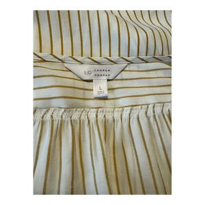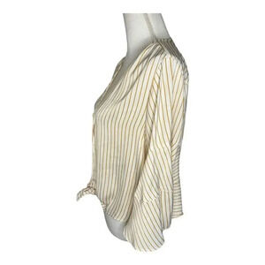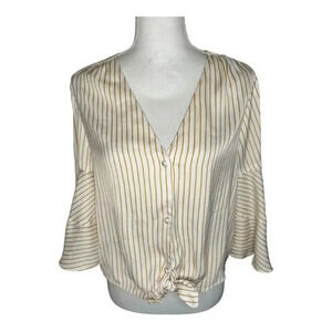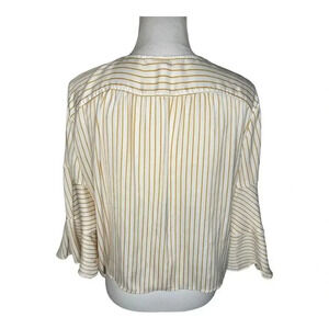 LC Lauren Conrad Women’s Large Gold & White Stripe Crop Flutter Sleeve Tied Top
