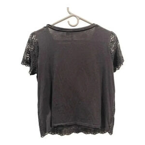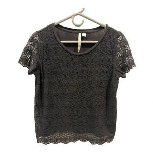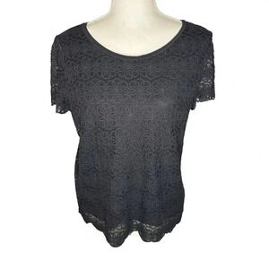 LC Lauren Conrad Women’s Medium Black Short Sleeved Blouse With Black Overlay