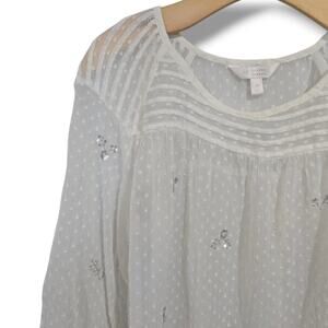 LC Lauren Conrad Women’s Medium White Chiffon Peasant Top Semi-Sheer
