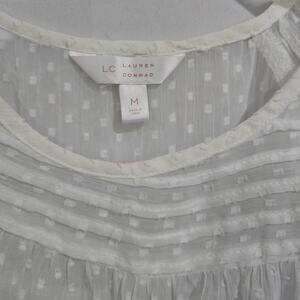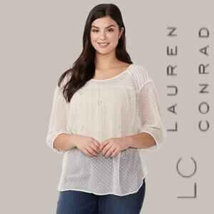 Chic LC Lauren Conrad chiffon peasant top. Size medium, lightweight polyester. Textured semi-sheer fabric with flowy fit. 3/4 sleeves, feminine and versatile. Gently used, in great condition. Perfect for layering or dressing up jeans.