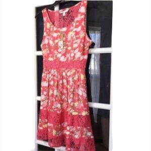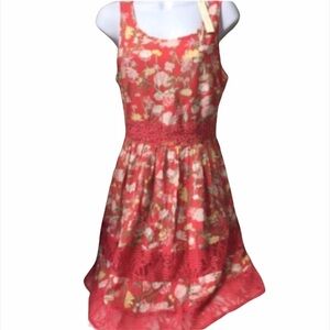 LC Lauren Conrad Womens Orange Floral Sleeveless Lace Sundress Dress Sz 2 New
